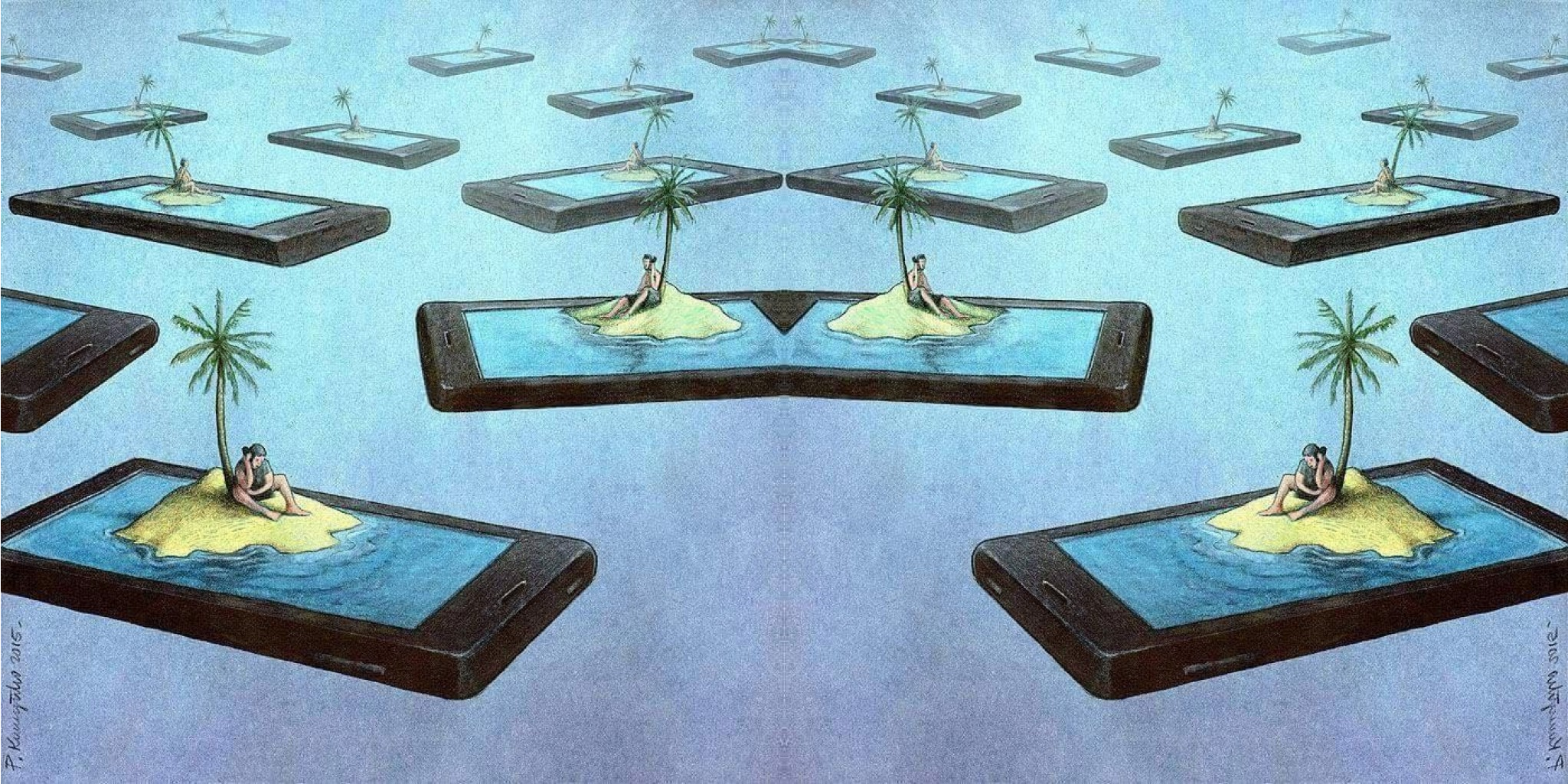 وبالعودة إلى ليسكانو، يبدو أن المشكلة اليوم ما زالت تراوح مكانها، مع اختلاف الأدوات والسياقات التعبيرية. محدودية النقاش هنا هي صلب المعضلة. فعلى الرغم من وعود التكنولوجيا الدائمة بخلق قريةٍ صغيرة من العالم، سكّان هذه القرية (أو الجزيرة) لا يدركون أبعد من حدودها الافتراضية، وكأنها سجن ماديّ وجد تعبيره الأدق داخل أربع زوايا صغيرة ترسم معالم الحياة وانطباعاتنا عنها.
